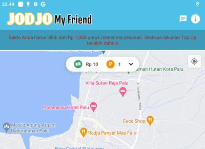 Agar notifikasi bisa berdering dan orderan dapat diterima, saldo harus berada lebih dari Rp. 1.000. Lakukan pengisian saldo yang dapat dilakukan melalui bank, dompet digital maupun gerai penyedia topup saldo